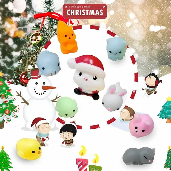 · Premium kwaliteit: het Squishies Pack bestaat uit 24 verschillende Mochi Squishies, waaronder de kerstman. Elk squishy speelgoed bestaat uit hoogwaardige en niet-giftige siliconen, die zacht en knijpbaar is.