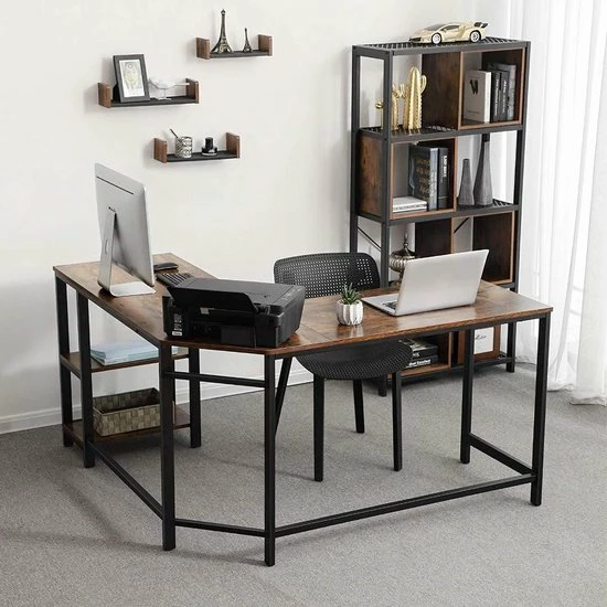 Voorts is de fraaie afwerking en het leuke industriële kleur ideaal voor een suffe bureauruimte op te smukken, al biedt ook de slaapkamer een ideale thuis. Aan jou om te kiezen waar en hoe het hoekbureau zal worden ingezet. Een computergerichte omgeving, of toch als traditionele schrijf- of tekentafel?
