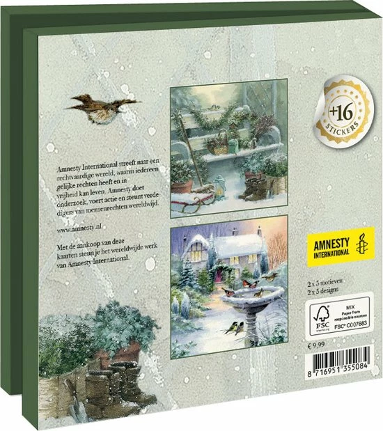 Tien dubbele kaarten (5 x 2 verschillende motieven) met 10 witte enveloppen, netjes opgeborgen in een aantrekkelijk kaartenmapje. Op de achterkant van het mapje staan de verschillende motieven afgebeeld. Zo vindt u snel de kaart die u nodig heeft. De binnenkant van de dubbele kaarten zijn blanco. Alle ruimte dus voor uw persoonlijke boodschap.