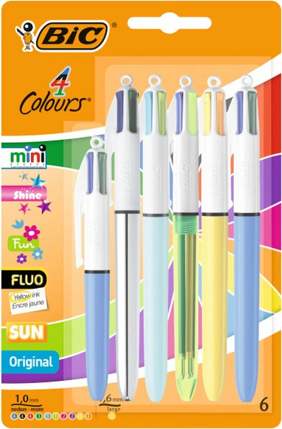 - Er zijn over de jaren veel verschillende versies uitgegeven: van de Grip, Fun en Mini tot de Shine en Fluo. Er zijn in de loop der tijd miljoenen BIC vier kleuren pennen verkocht en elke pen heeft een speciale plek in iemands hart. Voor de een is het gewoon die ene vertrouwde pen; voor de ander een belangrijk stuk gereedschap bij diens werk.