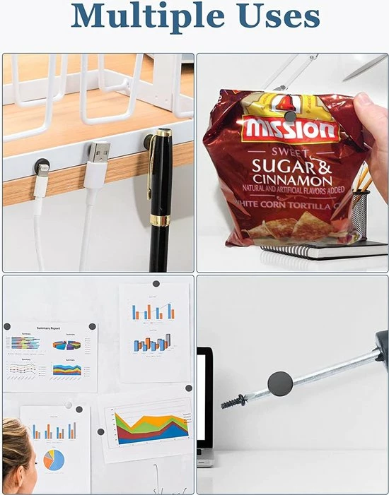 Geschikt voor: het opbergen van items op archiefkasten, lockers, whiteboards, prikborden, magnetische kaarten en koelkasten.