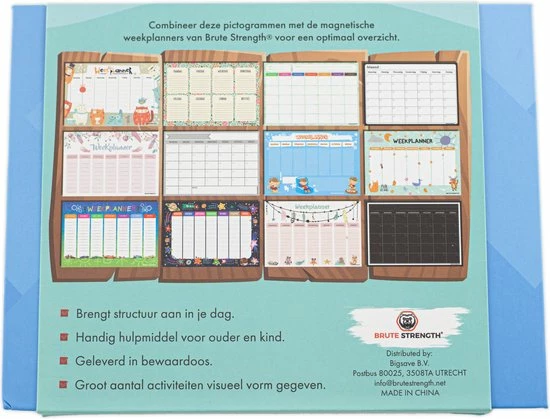 De perfecte basis om te plannen; Brute Strength’s magnetische pictogrammen! Deze gekleurde magnetische pictogrammen zijn bedoeld voor kinderen en/of volwassenen die behoefte hebben aan structuur en planning. In een tijd waarin alles steeds sneller lijkt te gaan, geeft het maken van een goede planning ondersteuning en een veilig gevoel.