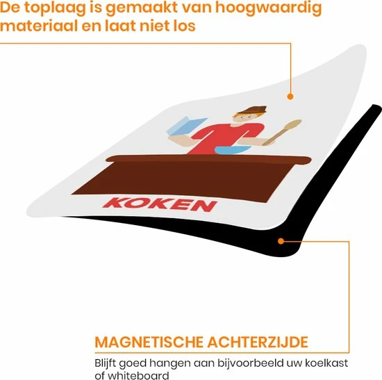 De pictogrammen zijn magnetisch en dus geschikt om ze op een (magnetisch) whiteboard/planboard of bijvoorbeeld koelkast te plakken. Deze planners zijn bij Brute Strength verkrijgbaar.