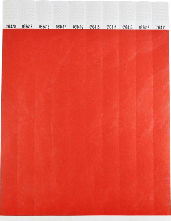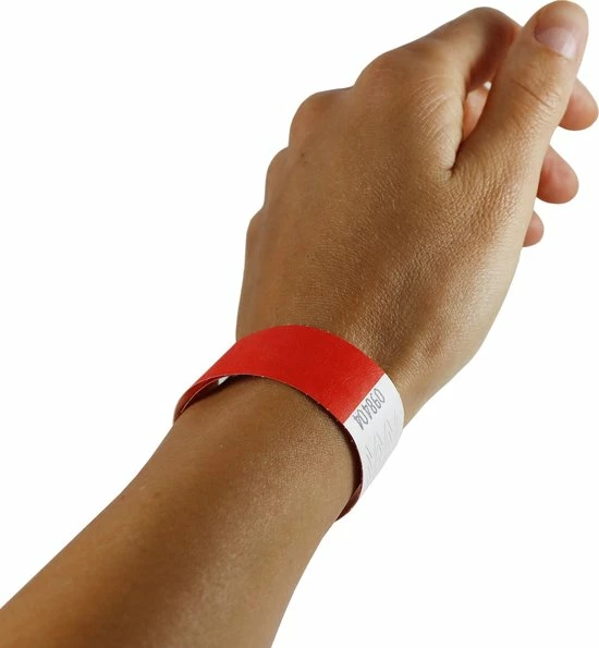 CombiCraft tyvek polsbandjes in de kleur rood met een plakstripsluiting per 100 stuks. Bandjes zijn te gebruiken voor allerlei toepassingen zoals toegang- of leeftijdscontrole, maar ook om te bevestigen aan producten ter identificatie.