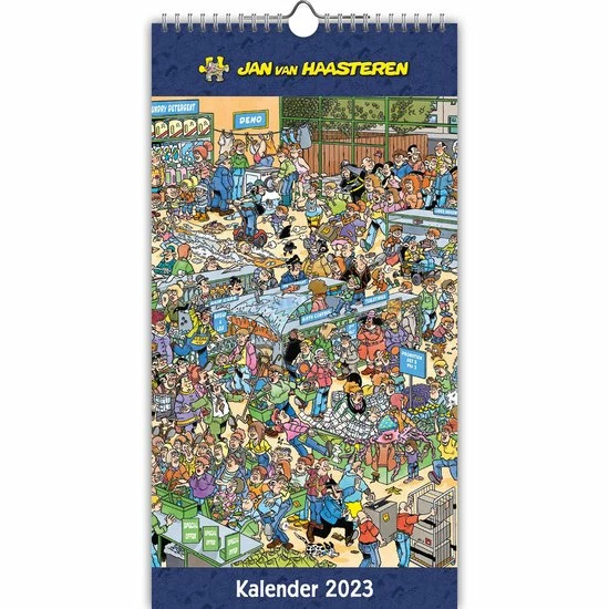 Vrolijke maandnotitiekalender van Jan van Haasteren. Deze kalender biedt veel notitieruimte en is uiteraard voorzien van alle feest- en vakantiedagen van Nederland en BelgiΓΒ«.