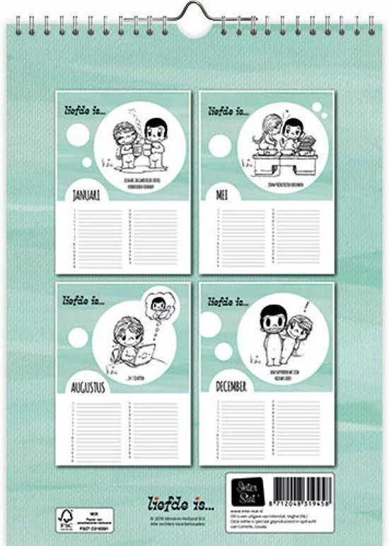 Verjaardagskalender van Liefde is … Wie kent ze niet, het schattige stelletje dat al jarenlang zulke mooie spreuken over de Liefde laat zien. Liefde isβ¦ is dan ook wereldberoemd. Ook leuk als cadeau!