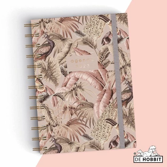 Stijlvolle spiraalagenda met harde cover voorzien van een mooie botanische print op een zachtroze achtergrond en goudfolie letters. De agenda wordt dichtgehouden door een elastieke band en heeft een verplaatsbare bladwijzer om snel bij de juiste datum te zijn. De indeling van de agenda is één week over twee paginaβs en heeft 5 transparante insteekhoesjes met tien chique giftcards. Deze agenda loopt van november 2022 t/m december 2023. * formaat cover: h:17,5cm x b:12,5cm * formaat binnenwerk: h:17cm x b:12cm * spiraal * hardcover met goudfoliedruk * 160 paginaβs * weekoverzicht * 5 pvc insteekhoesjes * 10 giftcards * elastieke band * bladwijzer Nederlands
