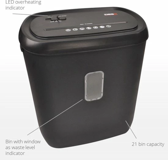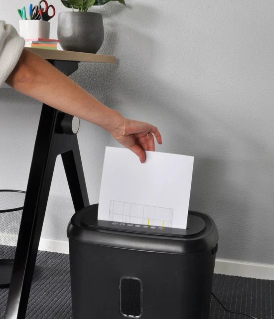 Stijlvolle cross-cut papiervernietiger voor thuiskantoren en kleine kantoren.