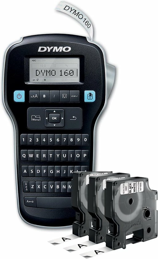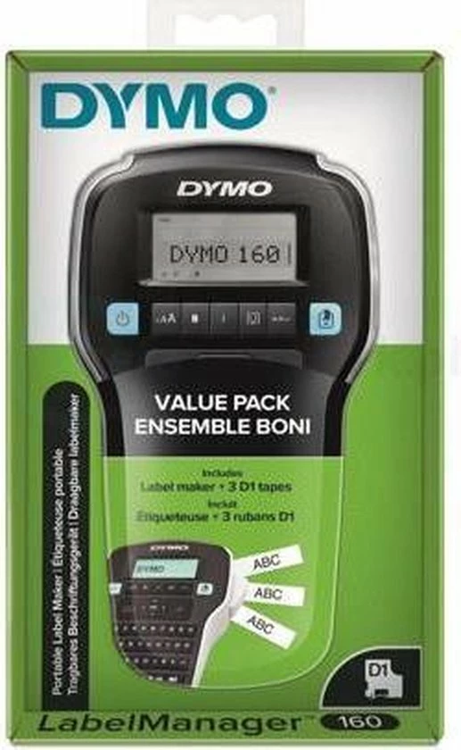 - Bevat: 1 x LabelManager 160 Label Maker, 3 x D1 Labelcassettes zwart op wit (12 mm x 7 m), Snelstartgids, 1 jaar beperkte garantie
