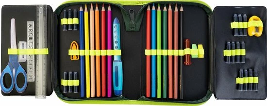 - De etui is gevuld met vele gebruiksvoorwerpen die je nodig hebt voor het dagelijkse schoolleven.