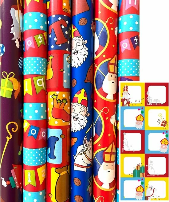 Tevens ontvangt u bij deze rollen 2 vellen met in totaal 20 vrolijke sint naamstickers.