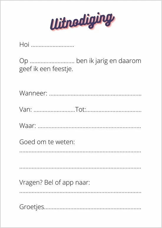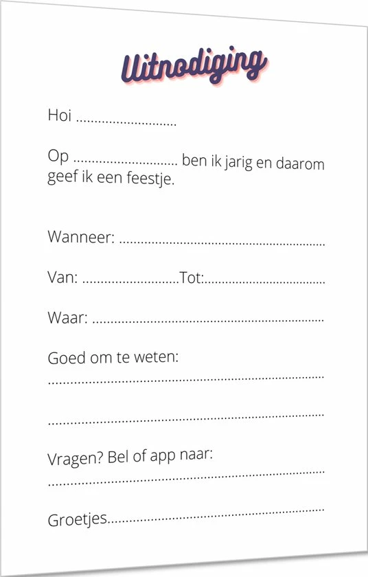 Uitnodiging kinderfeestje 6 stuks kleurrijk en modern.