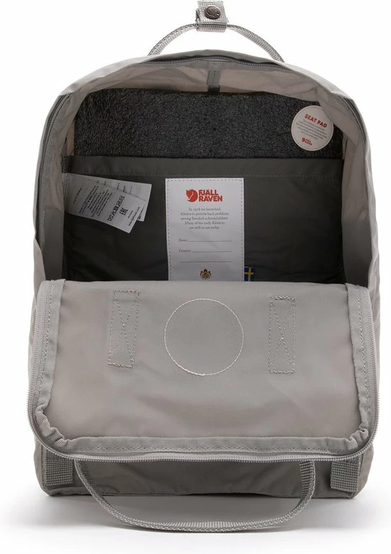 Klassieke Kånken rugzak van sterke Vinylon stof met een rits waarmee je het volledige hoofdvak kunt openen. Verwijderbaar zitkussen, klein voorvak, eenvoudige schouderbanden en handgrepen aan de bovenkant.
