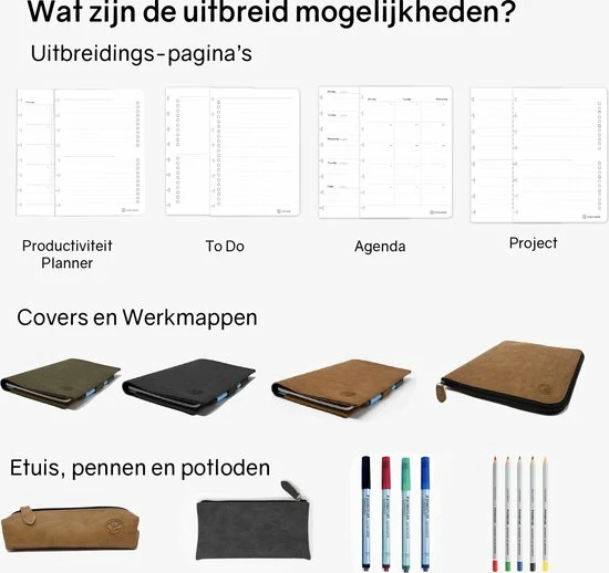 - Verschillenda losse pagina pakketten: To-do, Agenda, Project en Creatief