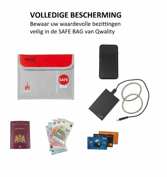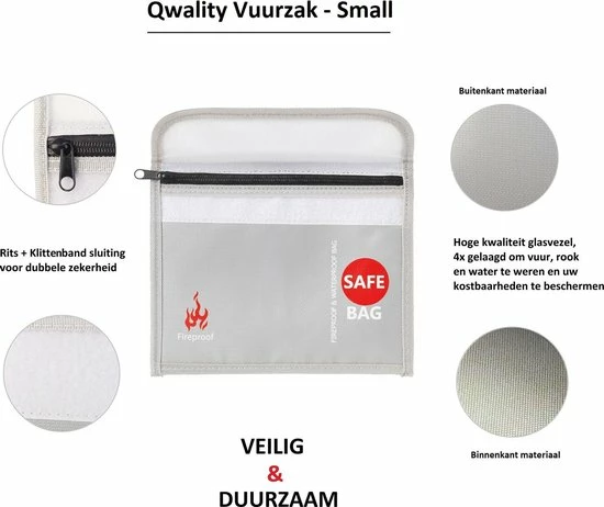 De hittebestendige, brandvertragende zakken van Qwality beschermen je waardevolle spullen tegen intense hitte (Β± 550 Β°C). De bescherming van enkel een kluis zal je waardevolle spullen hoogstwaarschijnlijk beschermen tegen dieven, maar wat als het noodlot je treft en je te maken krijgt met een brand!