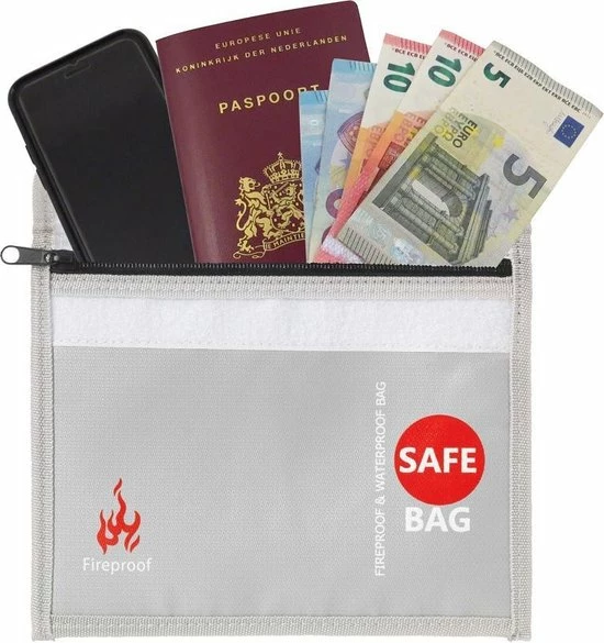 Let wel, de zak is hittebestendig en brandvertragend. Bij langdurige blootstelling aan groot, open vuur zal ook deze zak tekort komen, in samenstelling met een kluis zijn je documenten wΓ©l beveiligd!