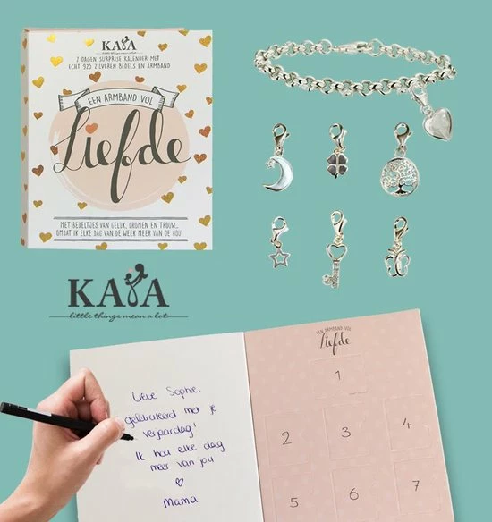 Wie zegt dat advent kalenders alleen voor Kerst zijn? Met deze Kaya Sieraden Surprise Kalender kun je je vrouw, vriendin, mama, BFF (of gewoon jezelf) het hele jaar door verrassen, met een week lang elke dag een mooie, echt 925 zilveren bedel en zilveren jasseron armband. Met voor elke dag van de week een deurtje om te openen zeg je haar op originele manier dat je elke dag van de week aan haar denkt en van haar houdt.