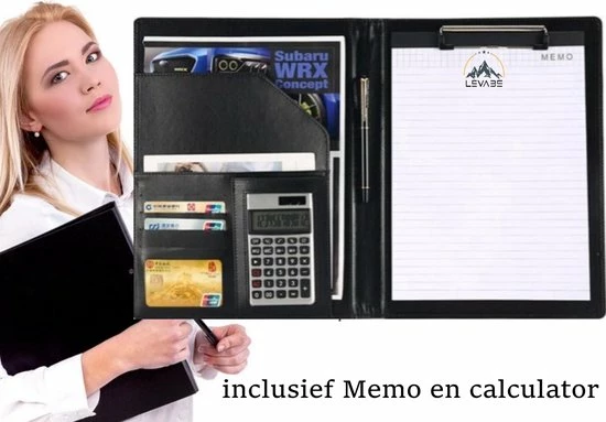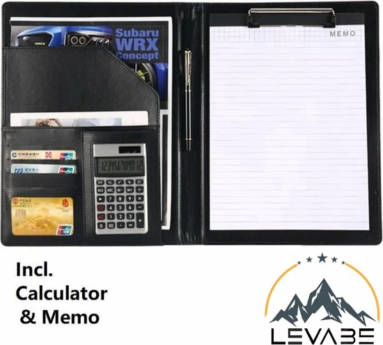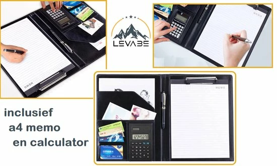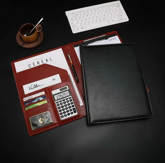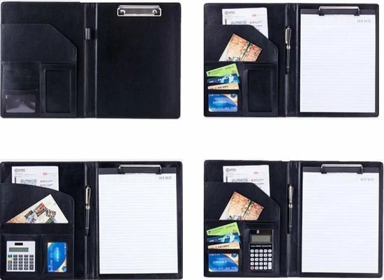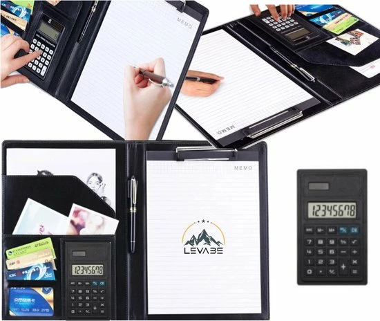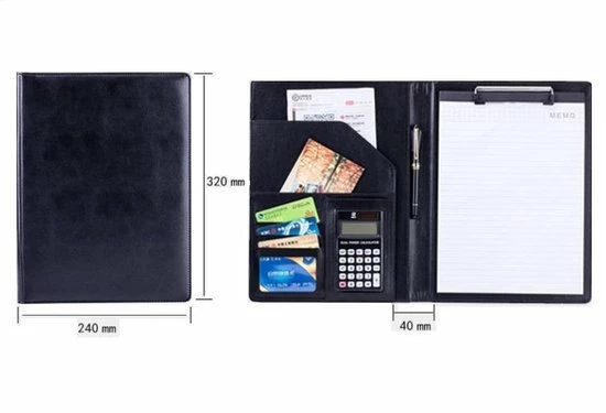 Luxe schrijfmap A4 zwart met rekenmachine + Memo blok