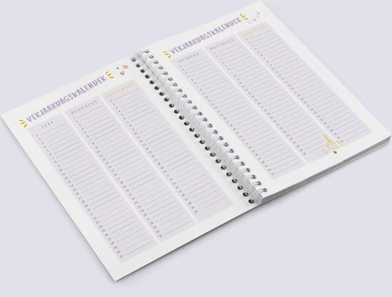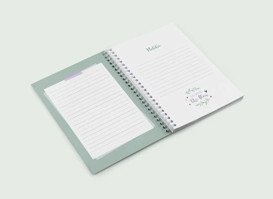 De agenda heeft een handig A5 formaat, een ringband en sluitelastiek. De agenda is opgemaakt in zachte pastelkleuren en is voorzien van leuke illustraties en quotes.
