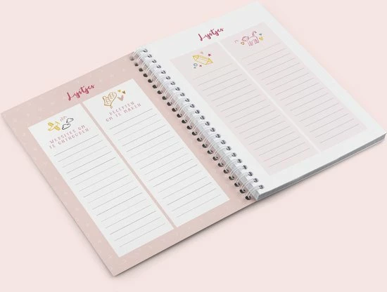 - Leuke lijstjes om in te vullen zoals ‘Boeken om te lezen’, ‘Websites om te onthouden’ en ‘Recepten om te maken’.