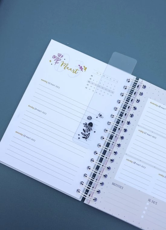 - Bladwijzer die je tussen de pagina’s kunt klemmen van deze week