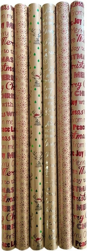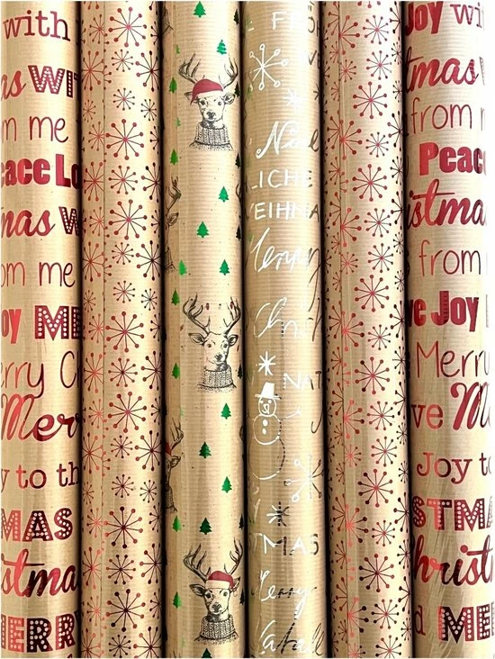 Pak uw kerstcadeau’s mooi in met dit folie bedrukte Kraft inpakpapier, met FSC keurmerk.