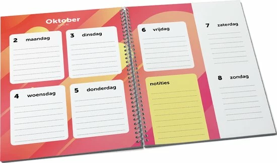 Ben jij op zoek naar een jaaragenda voor 2023? Met deze omlegagenda met ringband heb je gemakkelijk al je afspraken bij de hand. De agenda biedt genoeg ruimte voor al jouw afspraken en loopt van eind december 2022 tot eind 2023. De agenda is goed te gebruiken als kantooragenda, weekagenda/weekplanner, bureau agenda en als jaaragenda. De agenda is in A5 formaat en is gebonden door middel van een nette ringband. Hierdoor zijn alle pagina’s gemakkelijk om te slaan en ligt jouw agenda altijd op de juiste week. De agenda beschikt over mooi glad schrijfpapier en heeft een flexibele omslag.