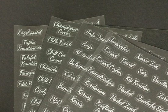 Bewaar je kruidenpotjes overzichtelijk in de keuken of voorraadkast met de sierlijke sticker set Jenna. Deze set bevat maar liefst 200 witte kruidenstickers. Sticker set Jenna geeft een sierlijke en vrolijke uitstraling aan je kruidenla of voorraadrek.
