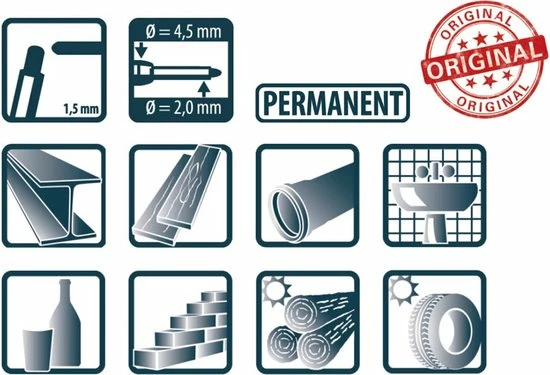 - Verlengde tip gemaakt van roestvrij staal – zelf aanpasbaar: tot 3 x meer markeer capaciteit