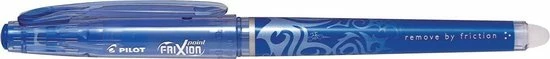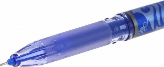 De Frixion Ball is de uitgumbare pen. Zonder gum, zonder wisser, zonder beschadigingen aan het papier, kan tekst makkelijk worden verwijderd. Het is mogelijk omdat de inkt van de Frixion ball op warmte reageert. Door wrijving met het kunststof uiteinde van de inktroller ontstaat warmte waardoor de inkt onzichtbaar wordt. Herschrijf de tekst en klaar. Kou (-15 graden) zorgt voor het tegenovergestelde effect. Leg de gewiste tekst in het vriesvak en na korte tijd wordt de tekst weer zichtbaar. De pen schrijft heerlijk en geeft uitstekend zijn inkt af.
