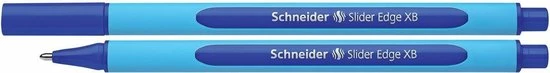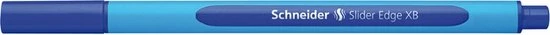 Balpen met rubberen 3-kantige schacht voor ontspannen schrijven. De dop kan omgedraaid worden. De Slider Edge kan niet rollen op het buro en de slanke uitvoering past goed in een pennenlade of penetui. Vlekvrij, ook in combinatie met een tekstmarker. Uitvoering in Extra Breed (XB). Kleur blauw. Schrijflengte ca 2.000 meter.