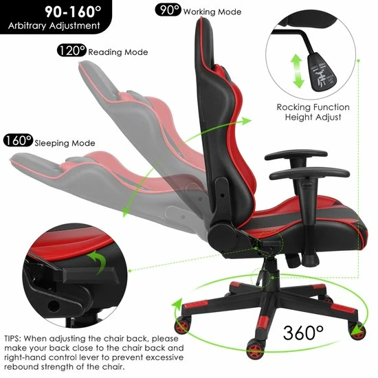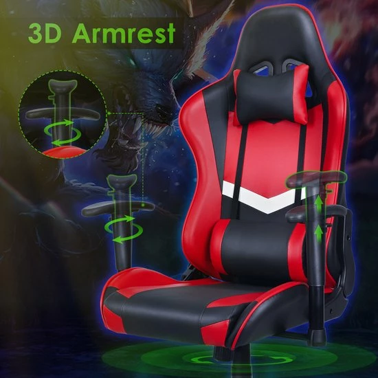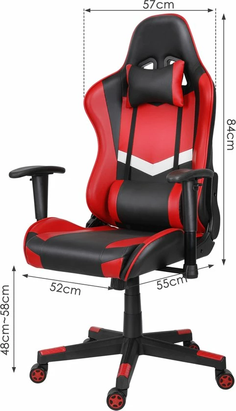 Gamestoel Michael is volledig draaibaar en heeft een maximaal draagvermogen van 150 kilo. Ook de zithoogte is verstelbaar tussen de 45 en 54 centimeter. Dankzij het sterke PU-leer gaat de stoel jaren mee en zorgt voor veel zitcomfort. Bij de stoel wordt een hoofdsteun geleverd waardoor je nek ook goed ondersteund wordt. De stoel is naast de kleur zwart ook nog verkrijgbaar in de kleuren blauw en rood. Gamen maar!.