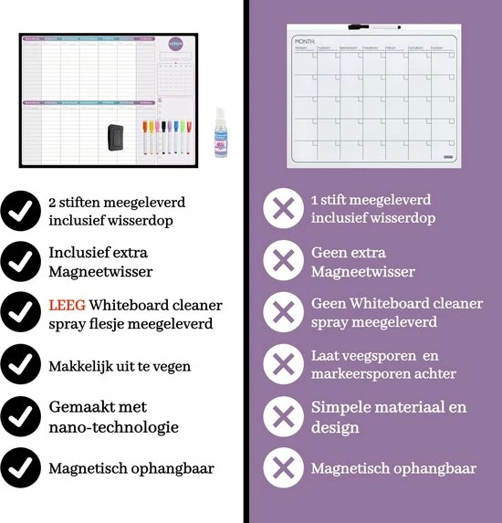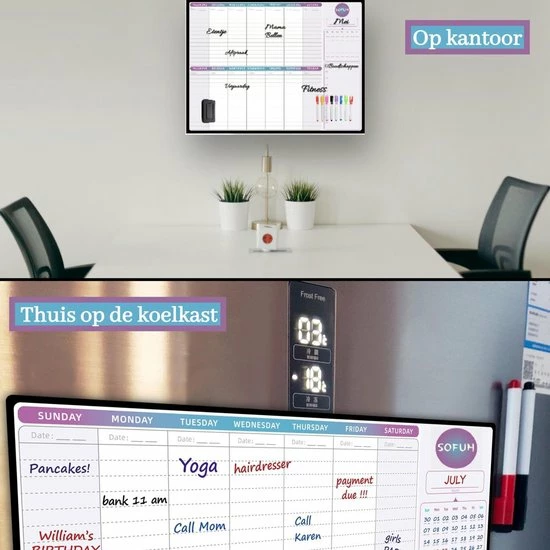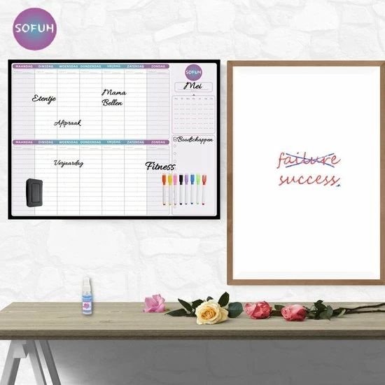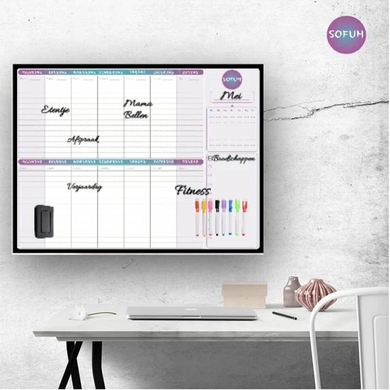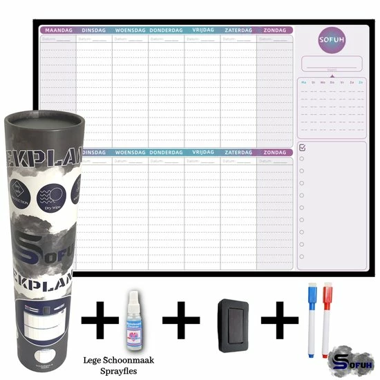 ✅ Alles in een pakket: Met de SOFUH® Weekplanner krijg je alles in huis. Je hebt dus geen omkijken meer naar allerlei extra’s die je normaal gesproken moet ‘bijbestellen’. Wij leveren standaard onze planners met een wisser, twee stiften en een lege whiteboard schoonmaak spray die je zelf kunt vullen met jouw gewenste schoonmaakmiddel.