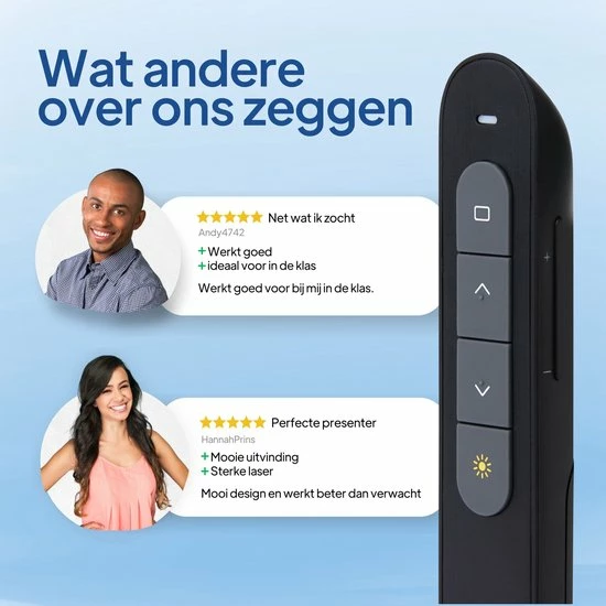 Ben je niet helemaal tevreden over de presenter, dan mag je het product binnen 30 dagen kosteloos retourneren. Wij zorgen dat je het volledige aankoopbedrag terug ontvangt. Heb je een vraag over de draadloze pointer, neem gerust contact op met onze klantenservice.