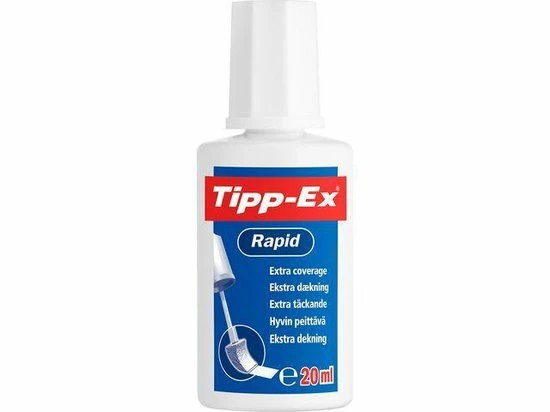 Flesje Tipp-Ex Rapid (onderdeel van BIC) met 25ml sneldrogende correctievloeistof met driehoekig sponsje voor een uiterst net resultaat.