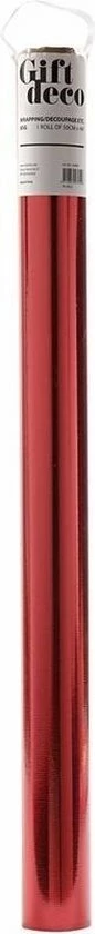 Cadeaupapier metallic rood met discreet streepjes patroon. Wordt per rol verkocht. Formaat: 400 x 50 cm. Materiaal: foliepapier. Inpakpapier / cadeaupapier / kadopapier.