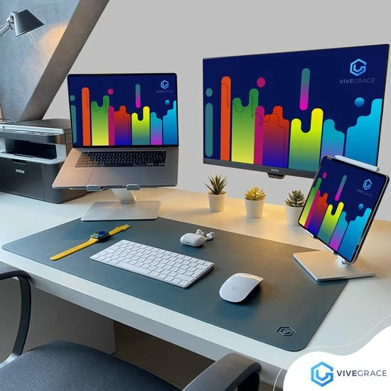 Waar een muismat alleen een fijne ondergrond is voor de muis, biedt de ViveGrace Bureaumat een aangename ondergrond voor al jouw bureauwerkzaamheden. Zo bescherm je het bureaublad tegen krassen en vlekken, biedt de mat een perfecte ondergrond als schrijfmat en is het luxe materiaal een comfortabele rustplek voor handen en armen.