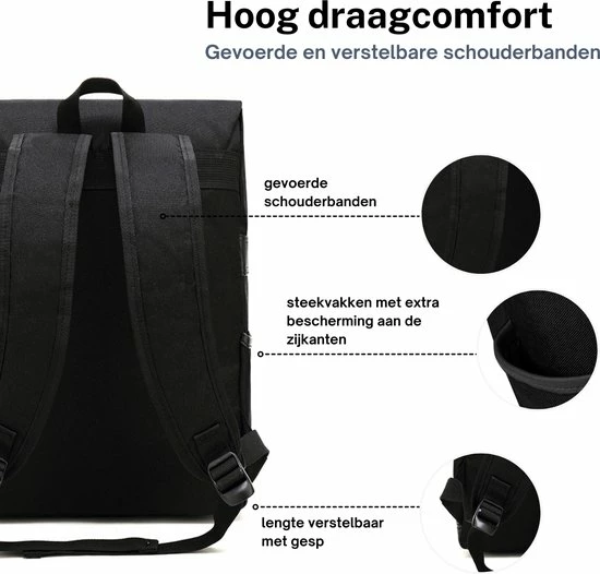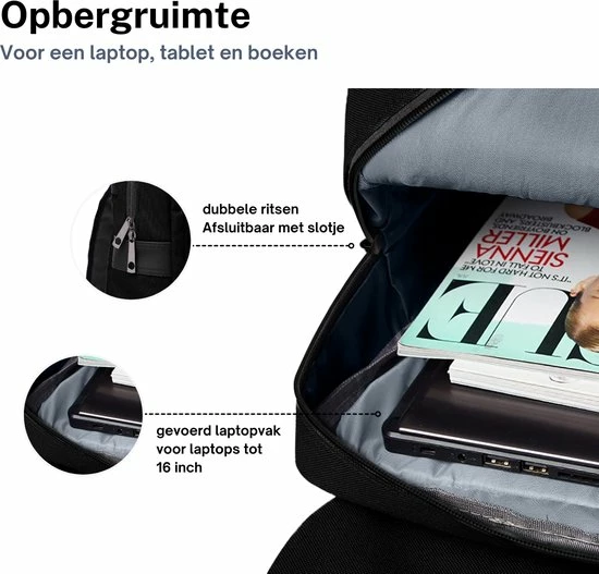 Geschikt voor laptops en tablets: gevoerd en verstevigd 16 inch laptopvak
