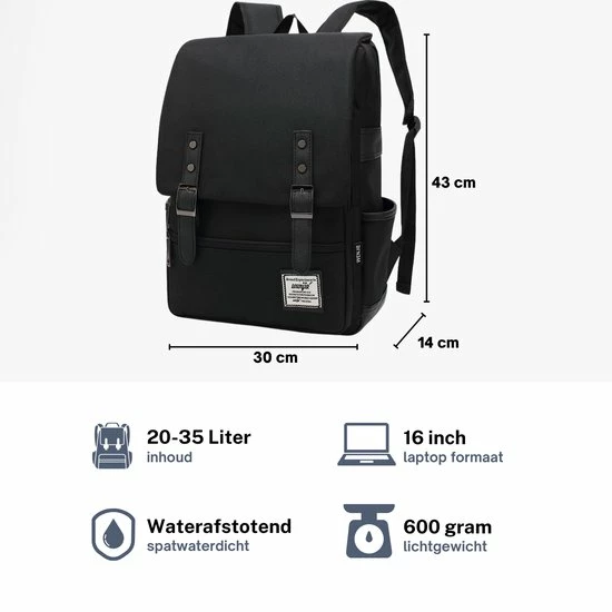 De afmetingen van de rugzak zijn: 43 cm x 30 cm x 14 cm (lengte x hoogte x breedte). Een leuk cadeau om te geven of te krijgen.